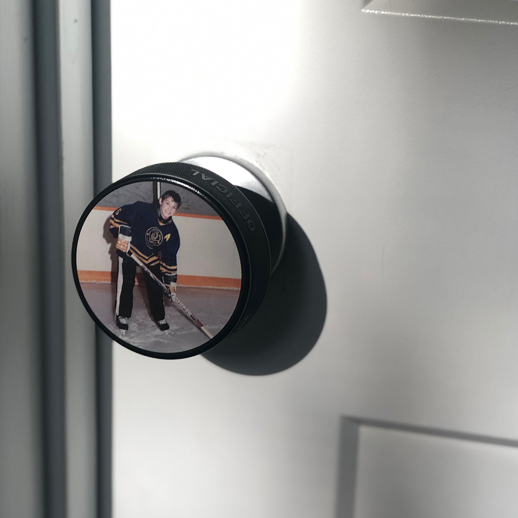 Personalize your very own puck knob! Have a photo of the hockey player in your house? What about your jersey number and last name? A team photo, or even a championship photo, be creative! It's not just for sports; represent your business, favorite hobbies and more!